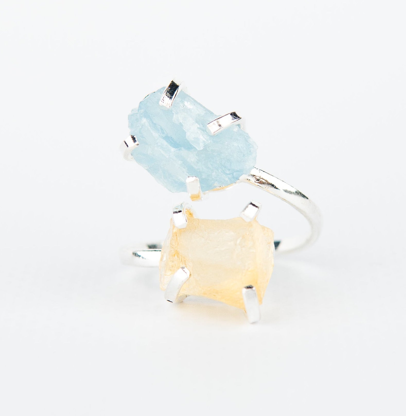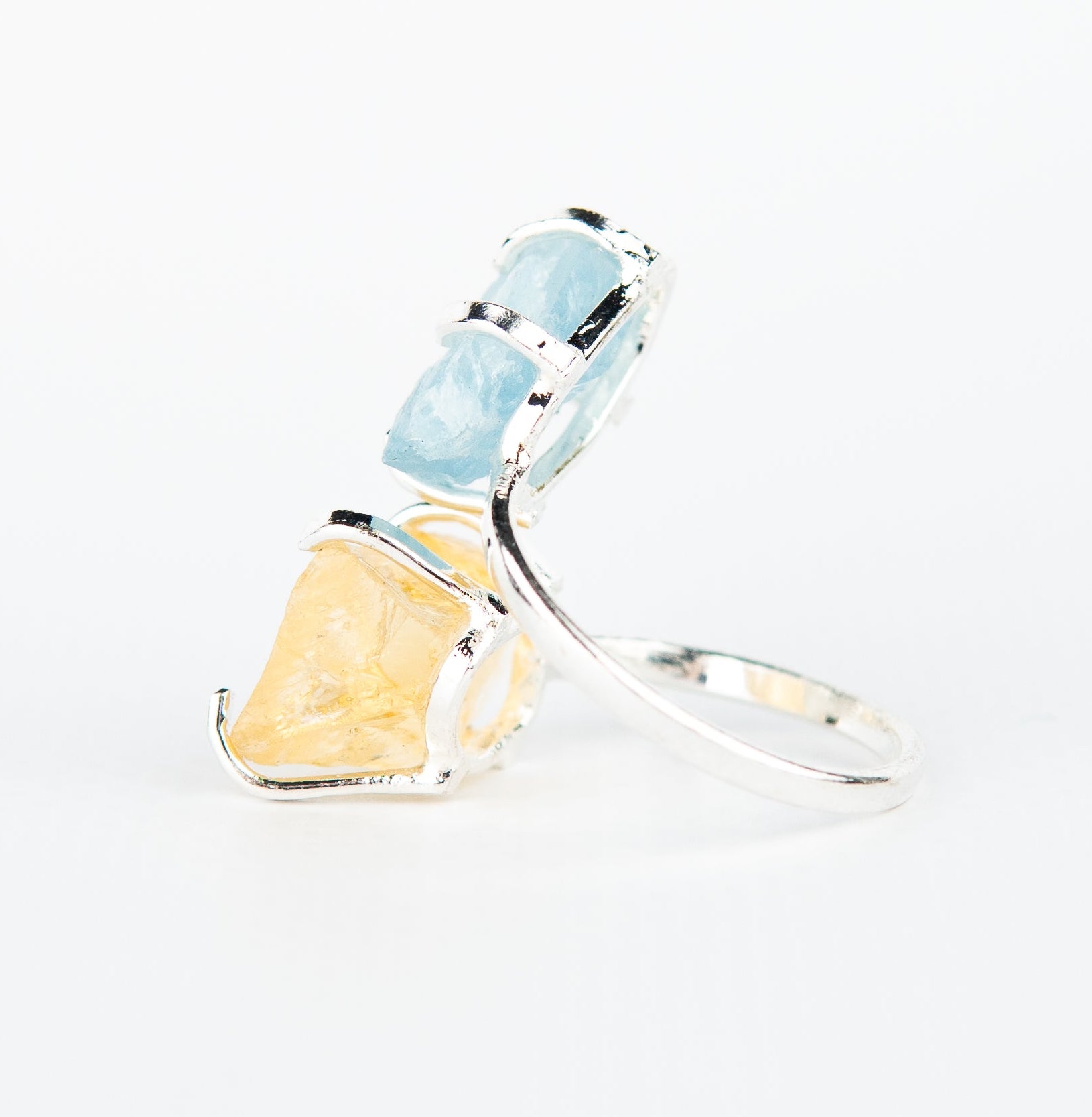 Каблучка з аквамарином та цитрином з посрібленням onesize AqCt-11
