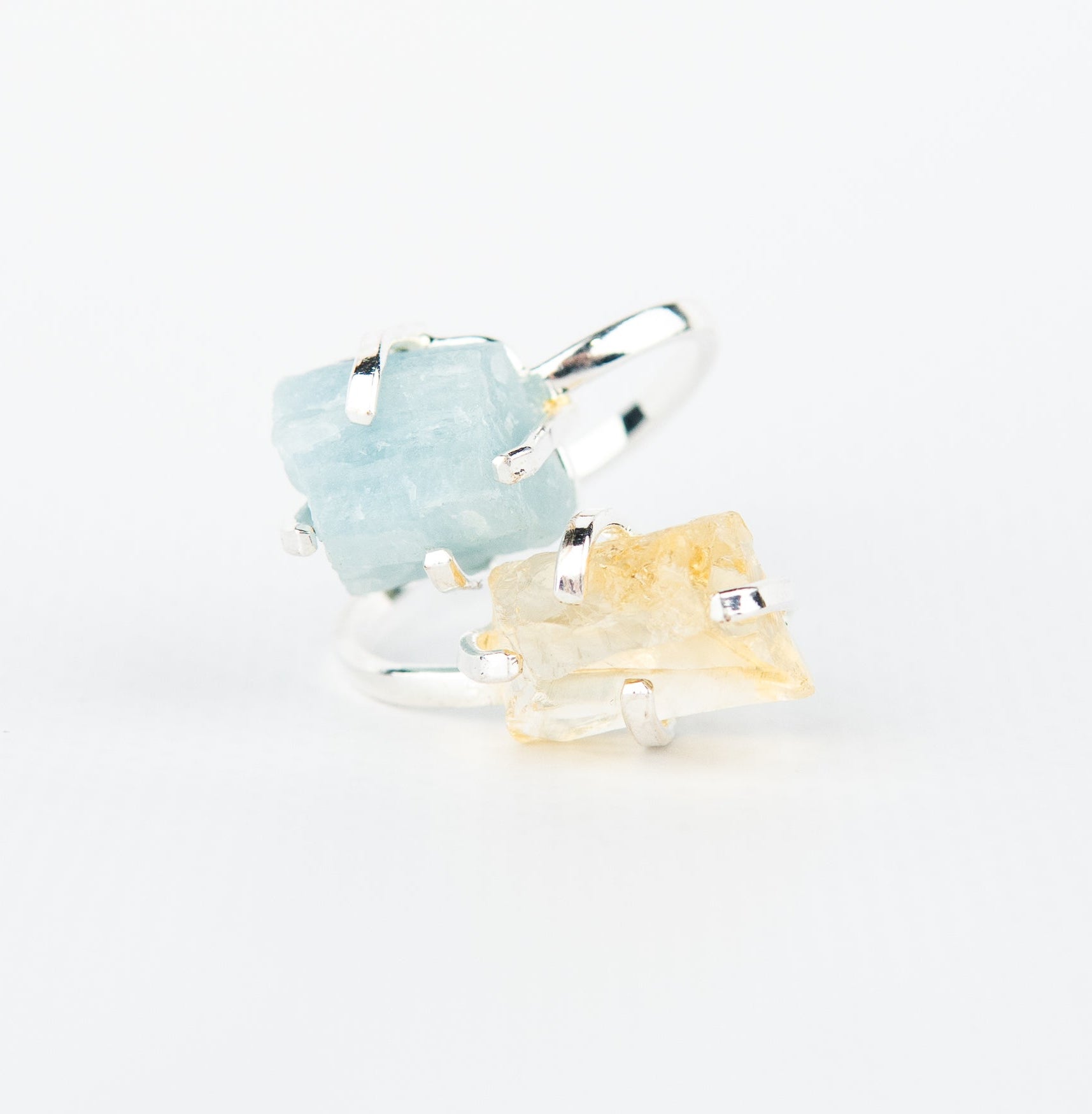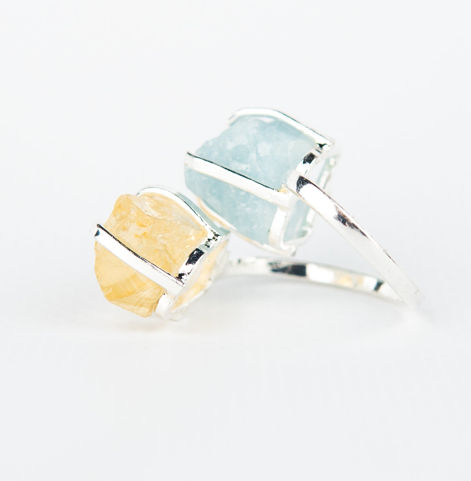 Каблучка з аквамарином та цитрином з посрібленням onesize AqCt-15