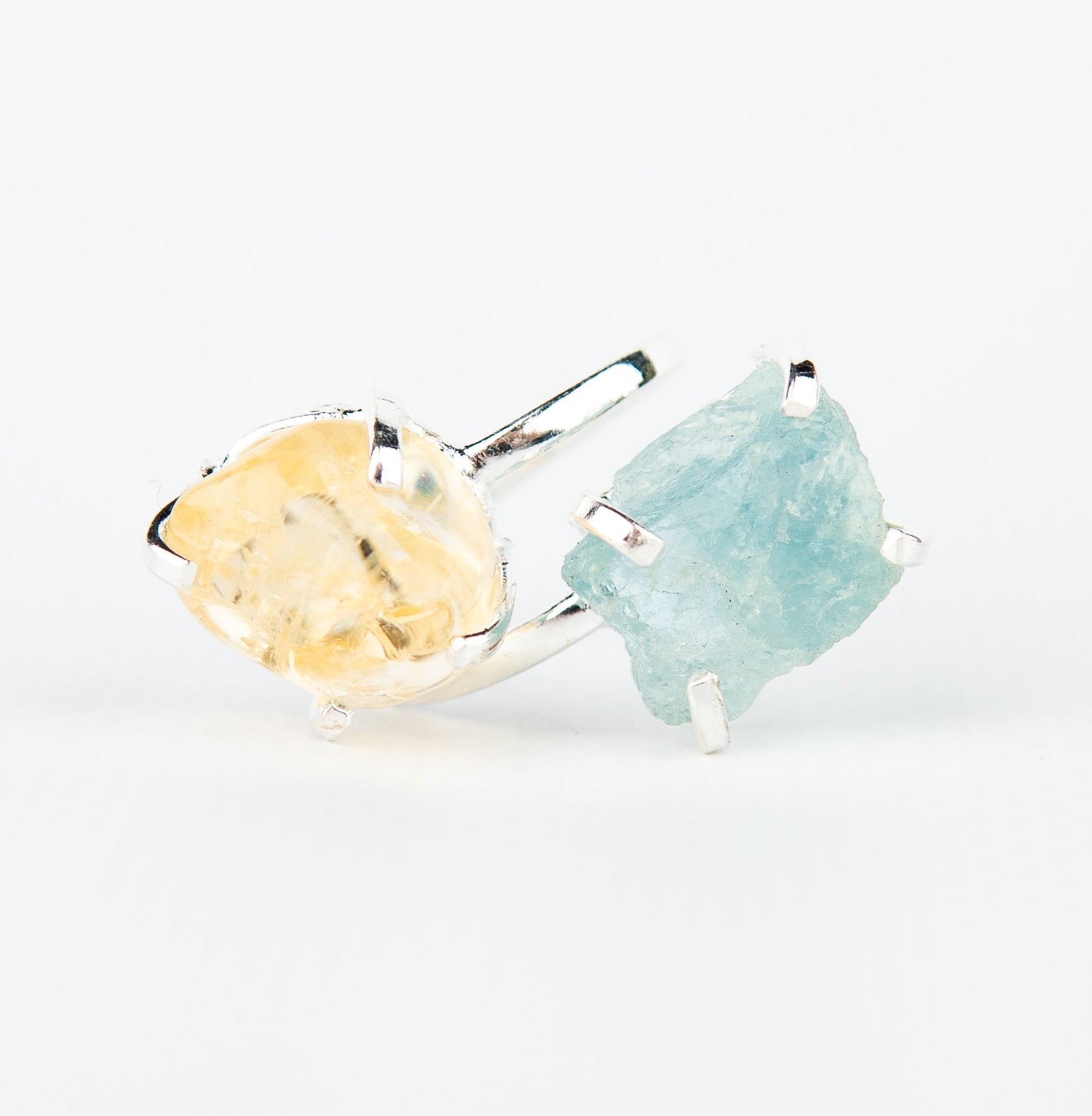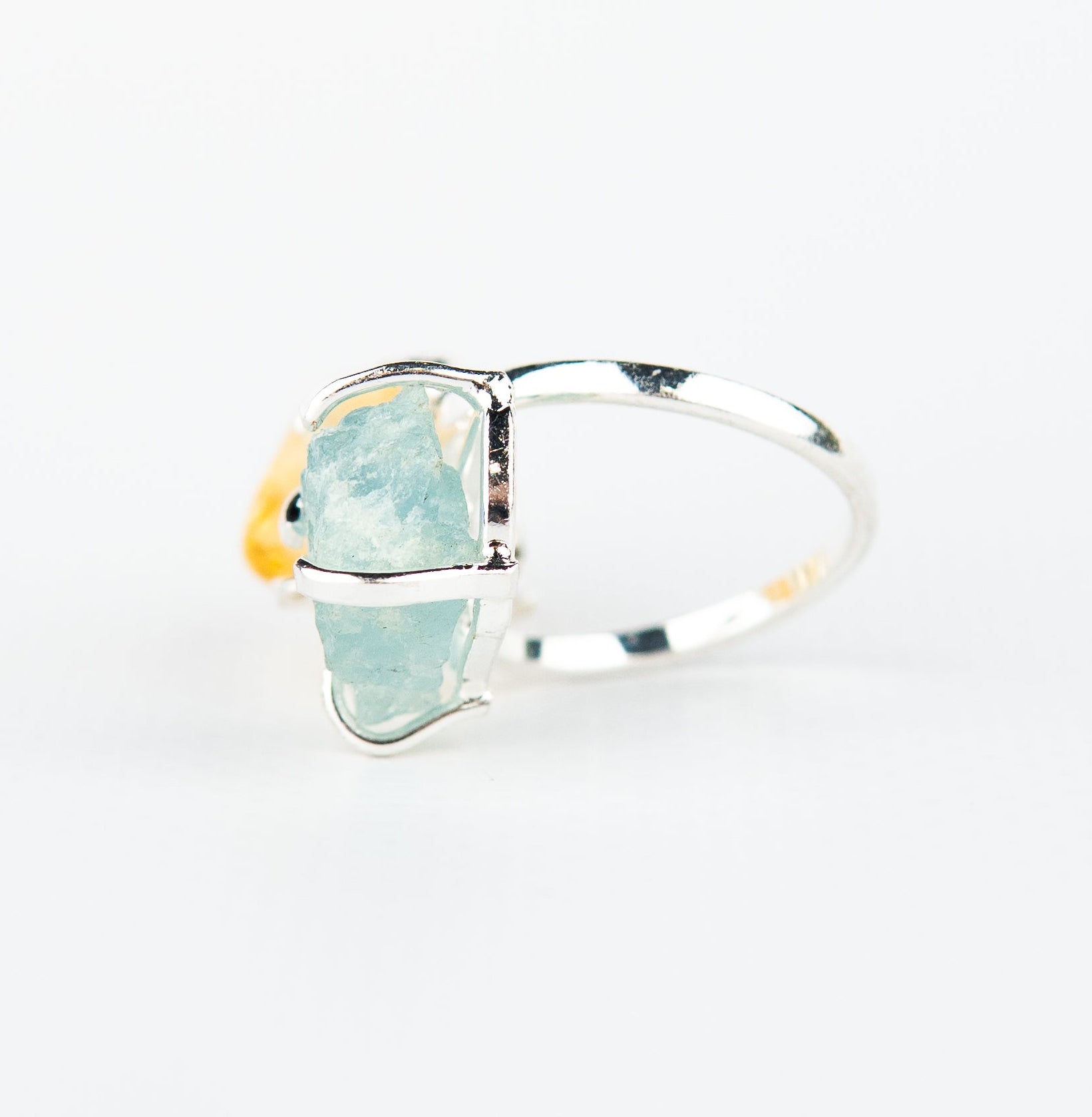 Каблучка з аквамарином та цитрином з посрібленням onesize AqCt-16