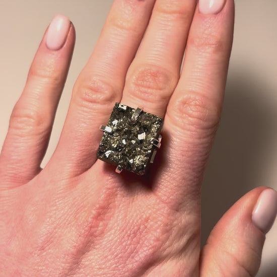 Каблучка з піритом з посрібленням onesize Py-105