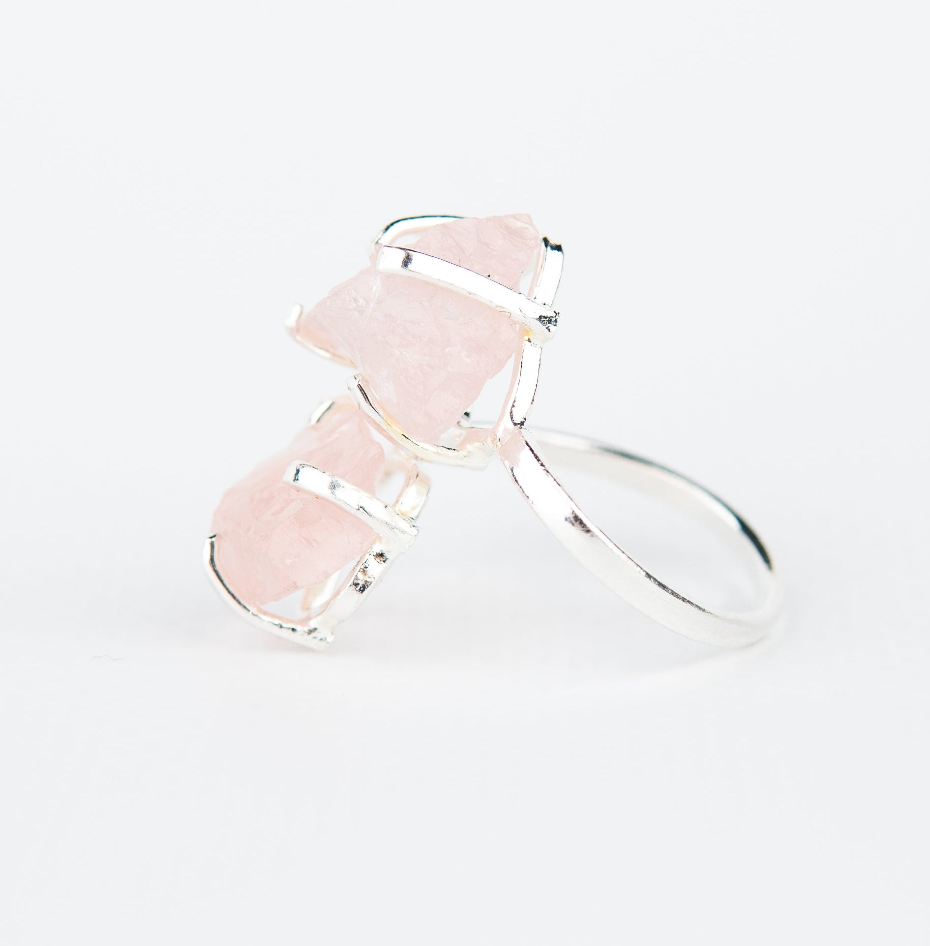 Каблучка з рожевим кварцом з посрібленням onesize Rq-12