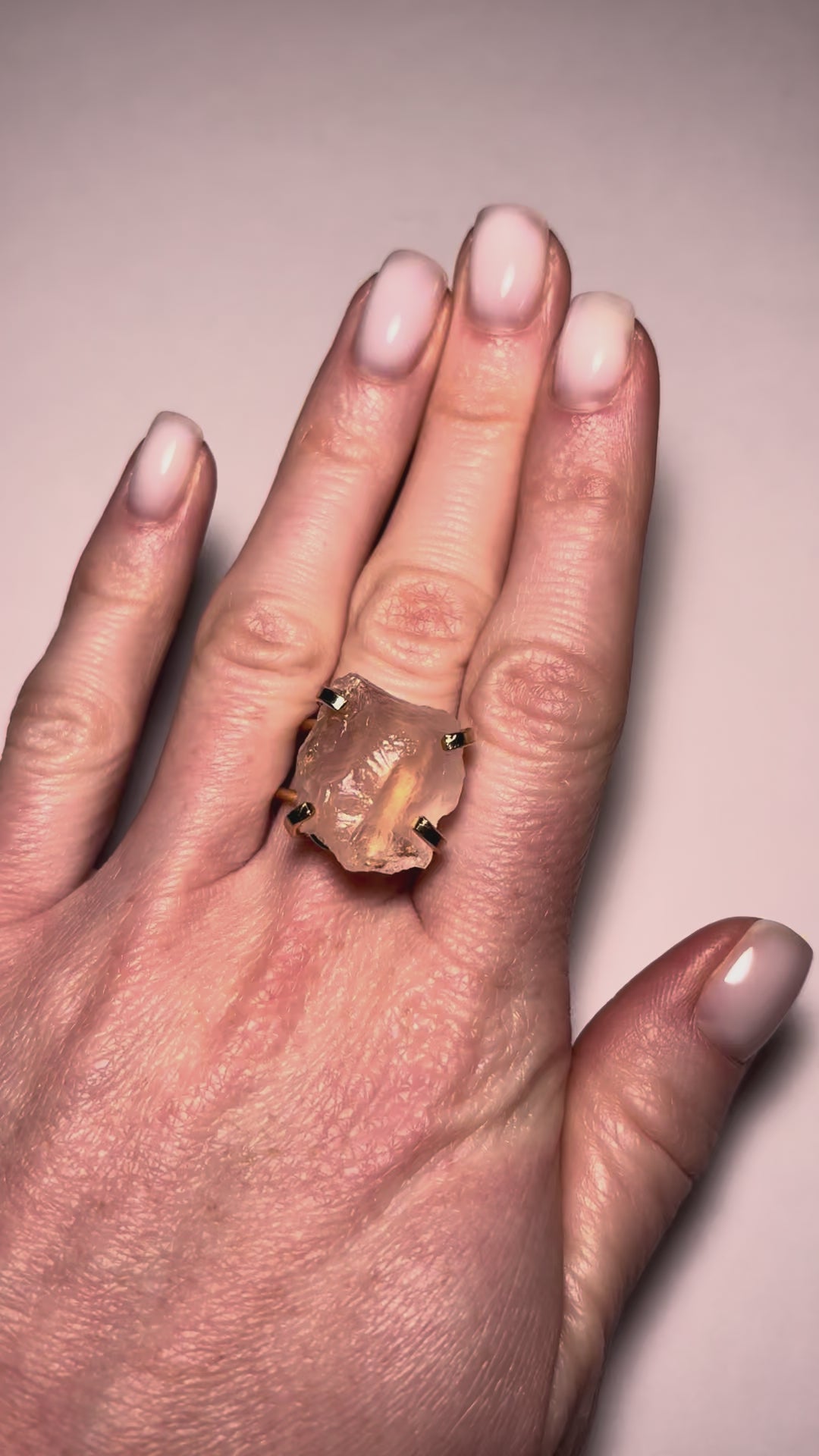 Каблучка з рожевим кварцом з позолотою onesize Rq-16