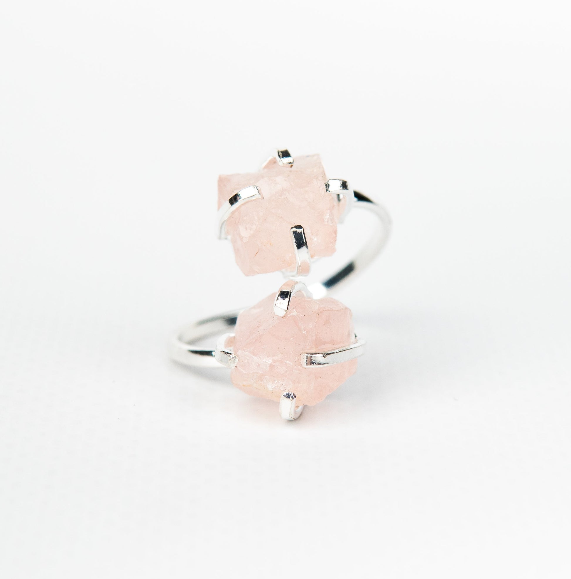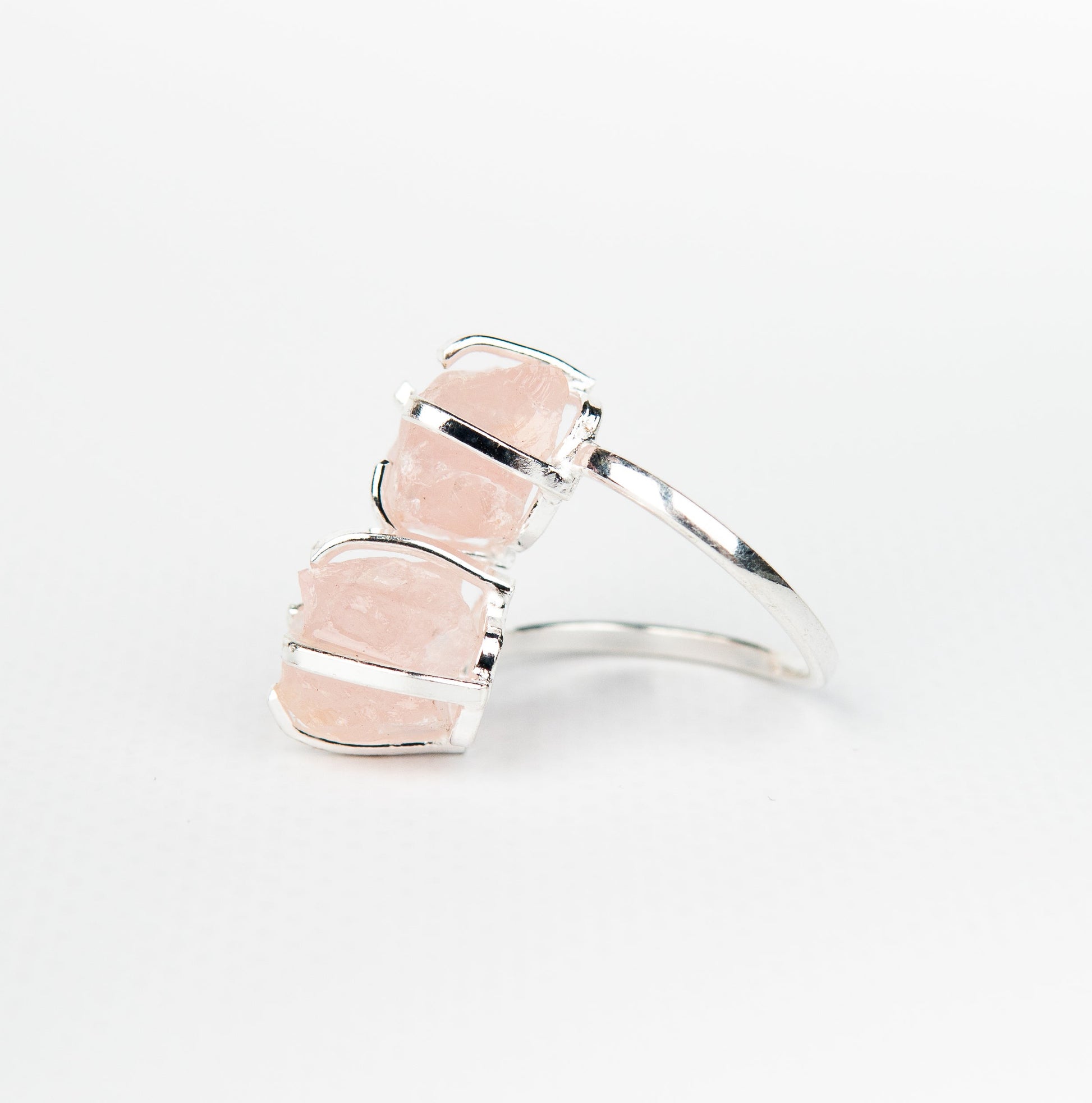 Каблучка з рожевого кварцу з посрібленням onesize Rq-11