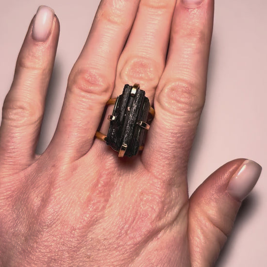 Каблучка з турмаліна з позолотою onesize Tu-3