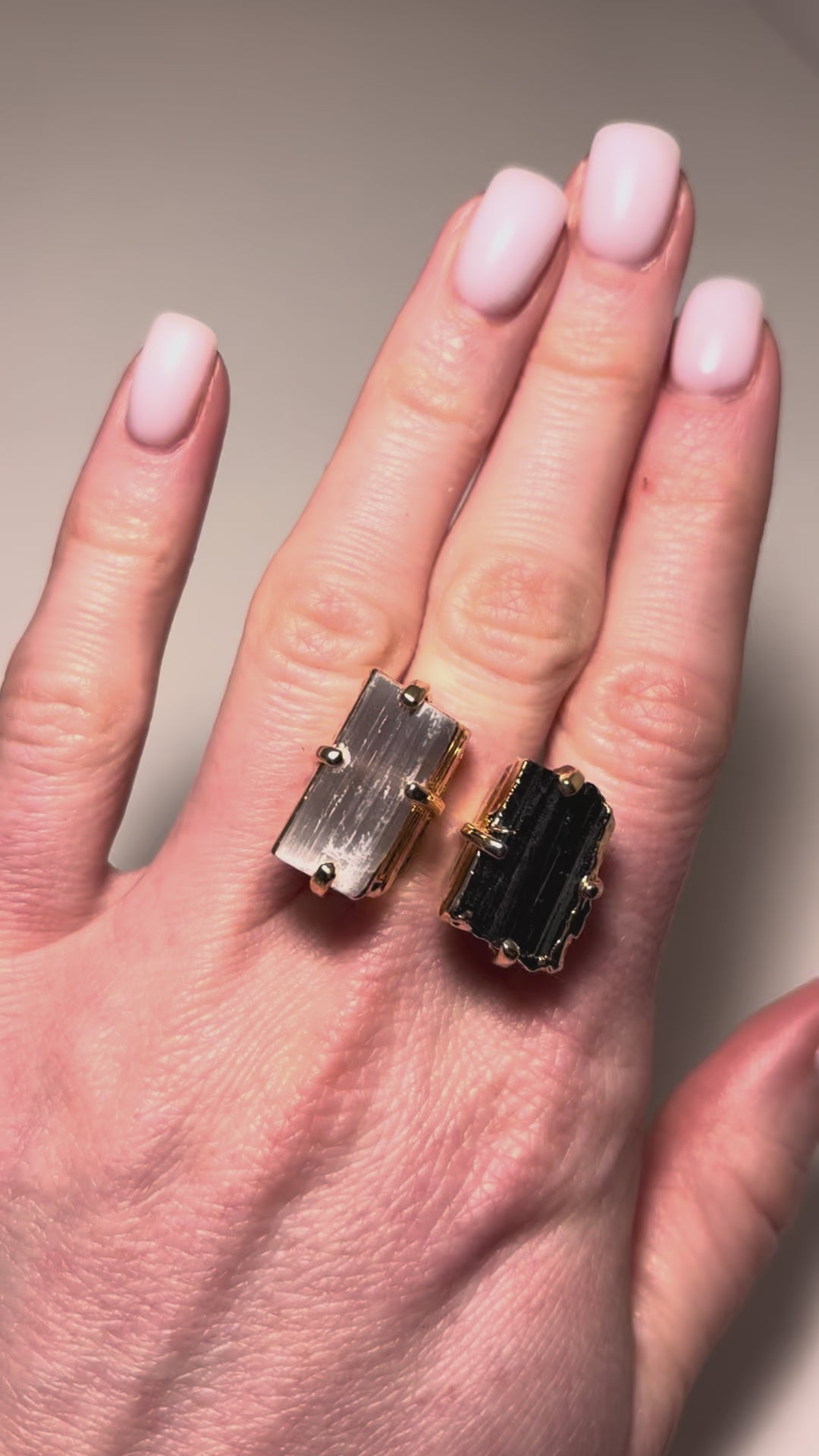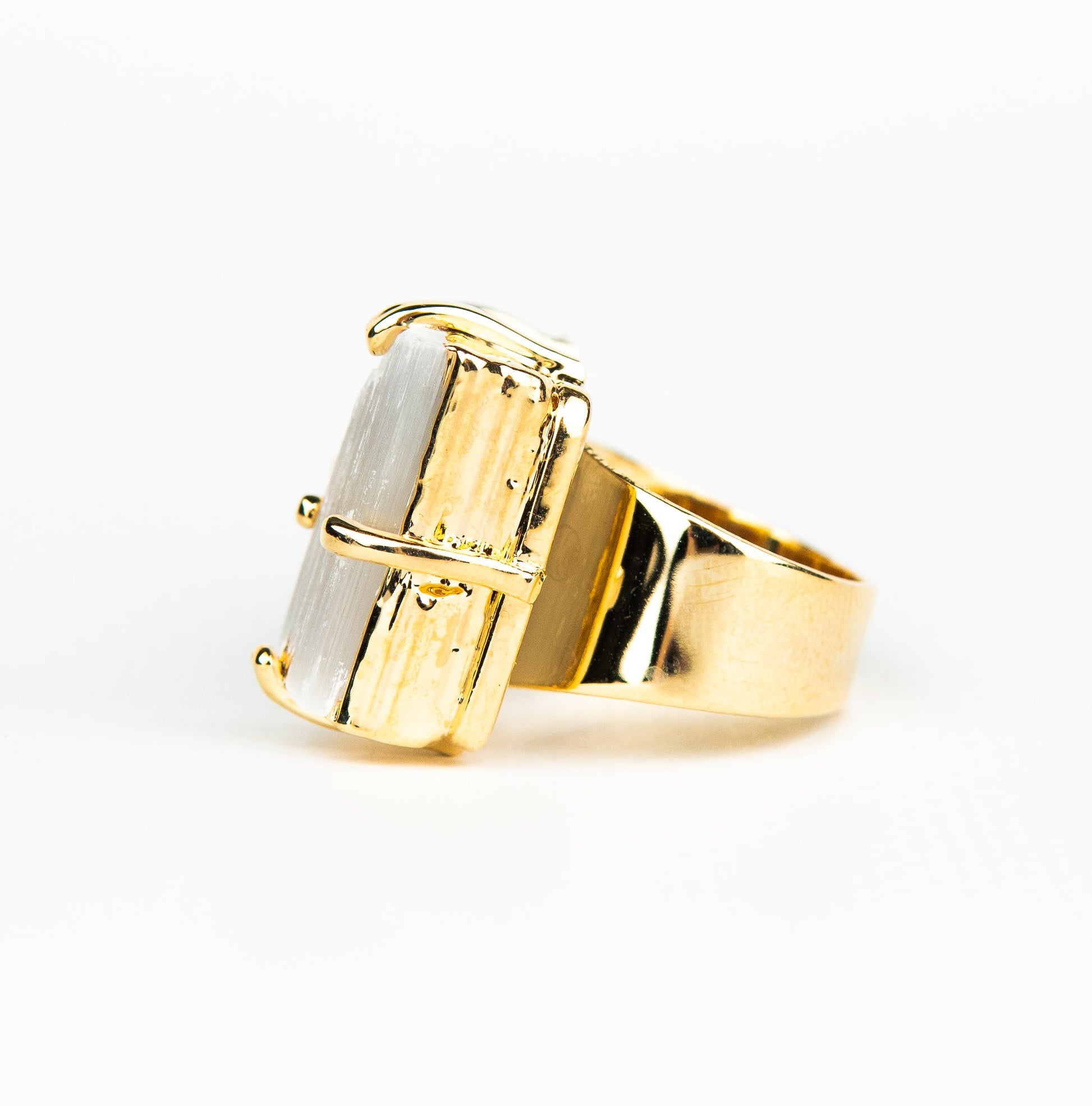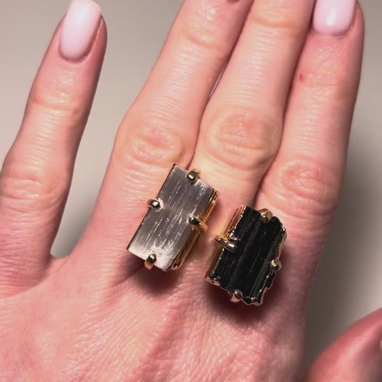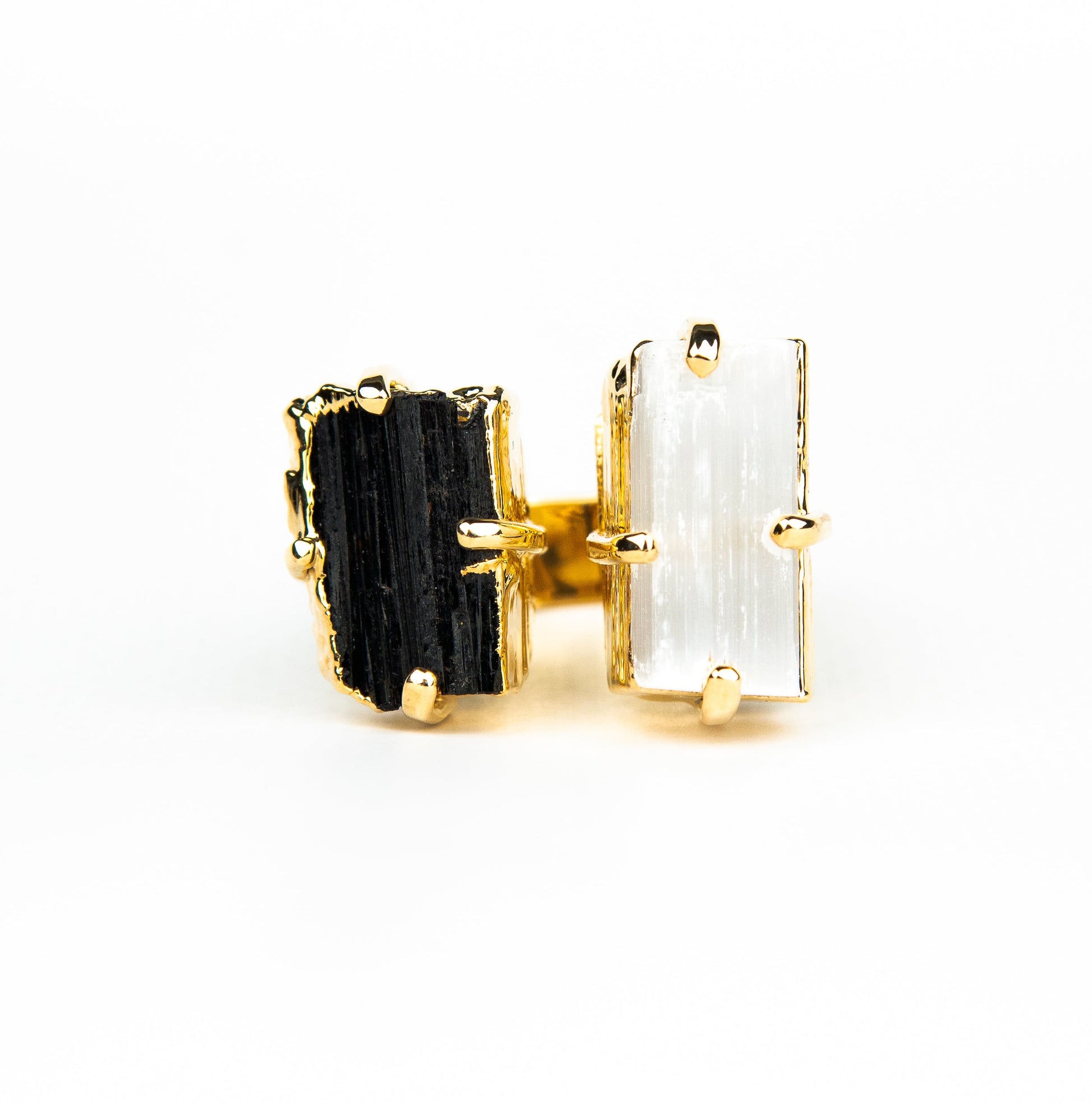 Каблучка з турмаліна та селеніта з позолотою onesize Tu-6