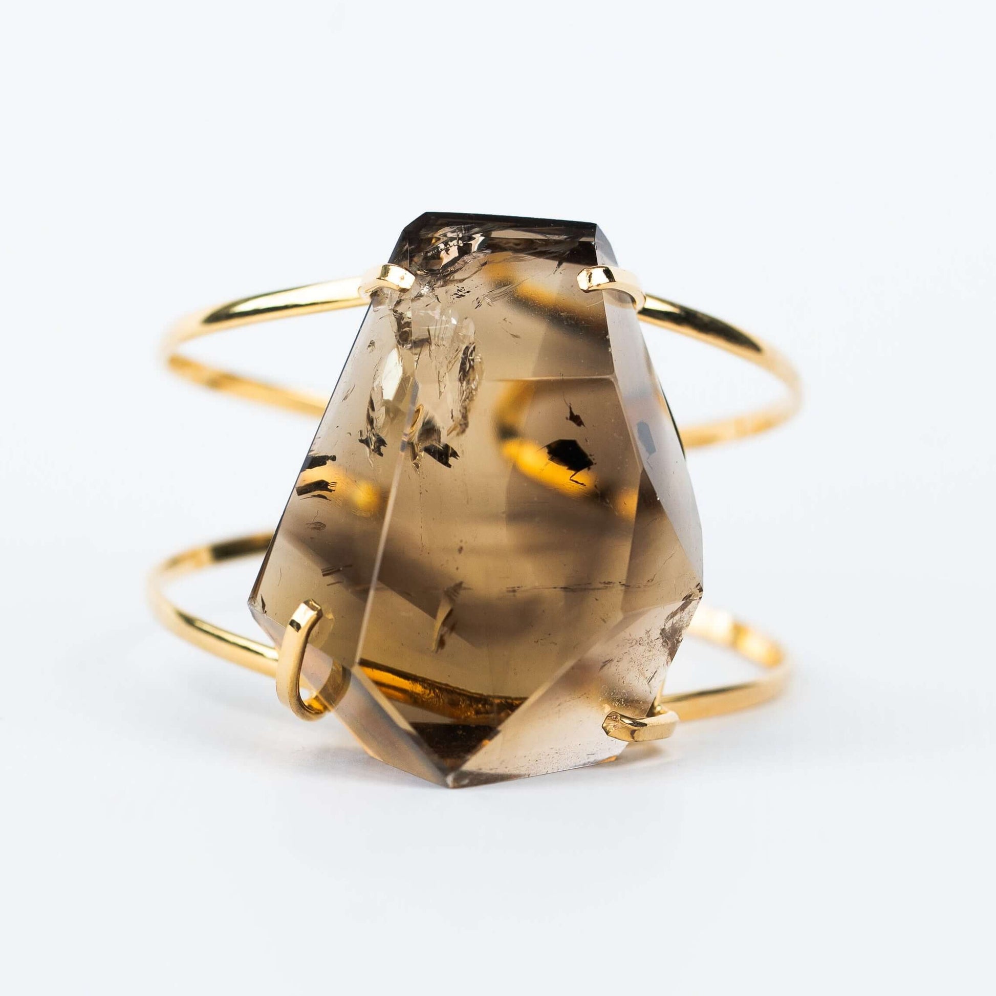 Браслет с граненым дымчатым кварцем с позолотой onesize Fsq-2