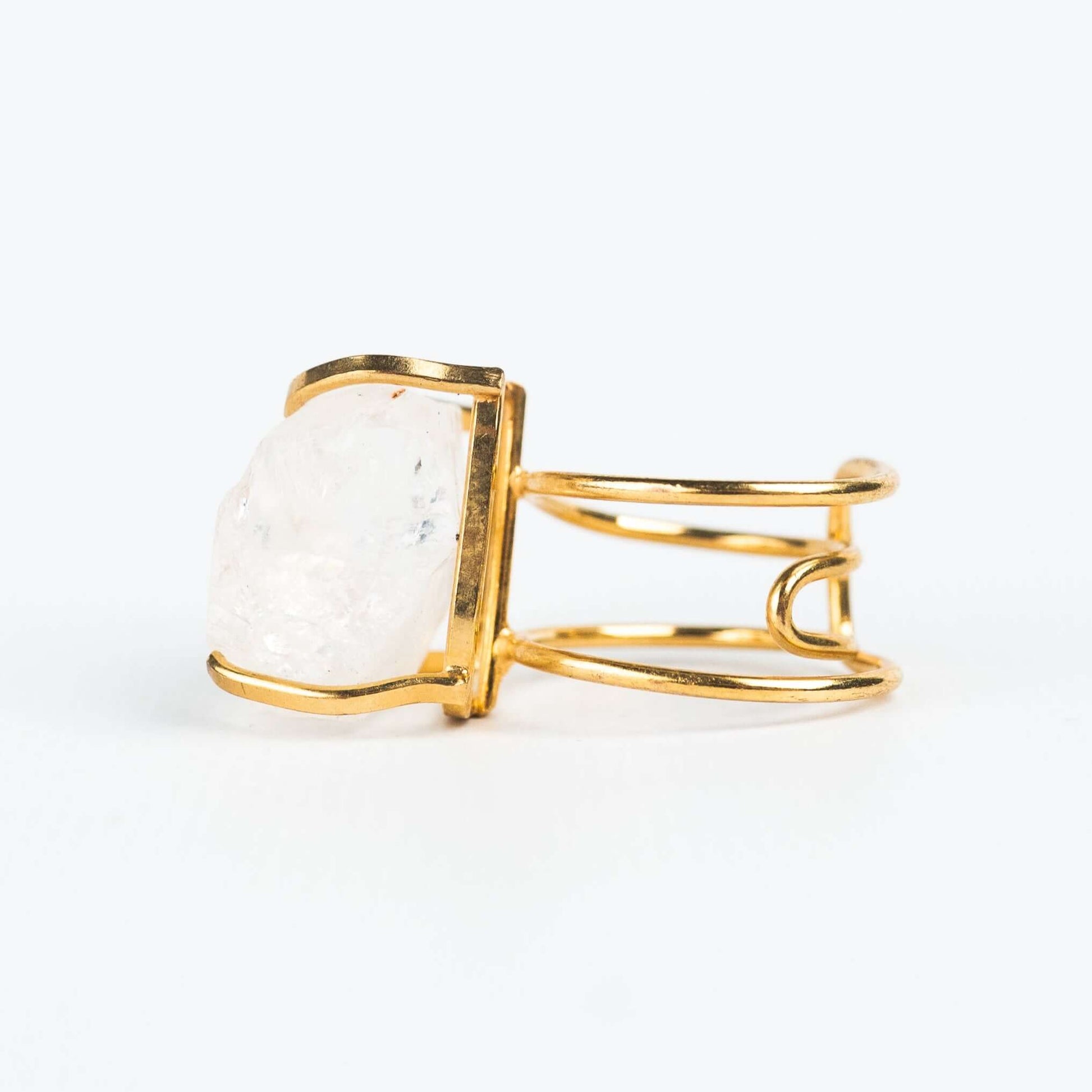 Кольцо из молочного хрусталя с позолотой onesize Mcr-2