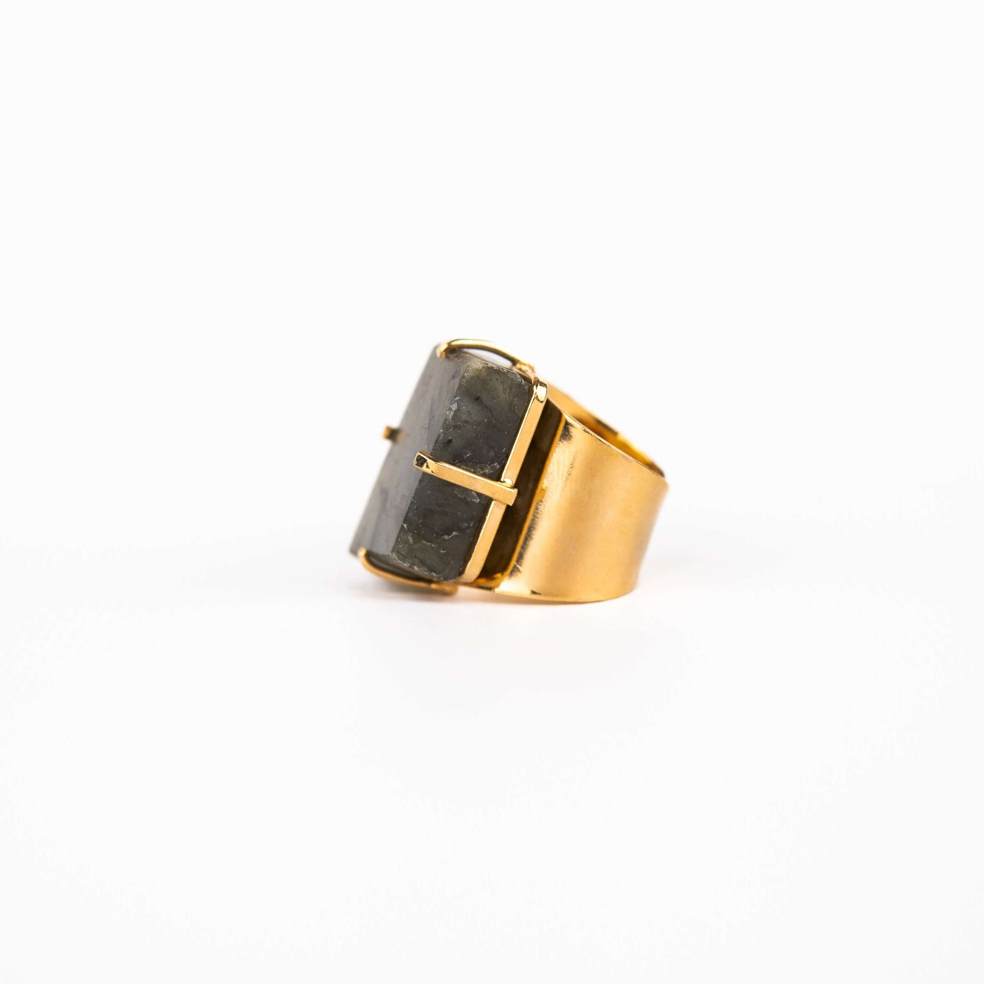 Кольцо с лабрадоритом с позолотой onesize Lb-2